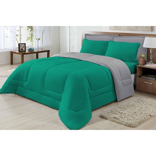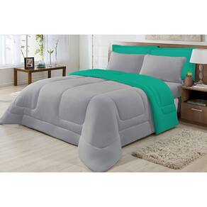 Edredom Casal Queen Dupla Face em Malha Antialérgica 100% algodão Cinza e Jad Edredom Casal Queen Malha 100% algodão