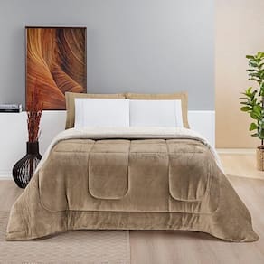 Edredom Coberdrom Insinuante King Sherpa Toque Lã Carneiro - Cáqui - 100% Poliéster
