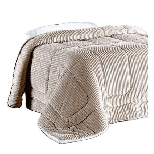 Edredom Coberdrom Manta Canelada Pesado King - Bege - 100% Poliéster