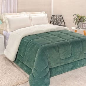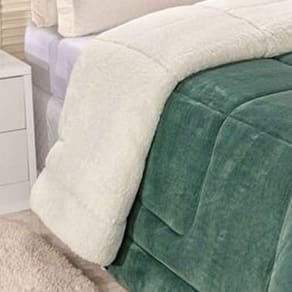 Edredom Coberdrom Pryme Solteiro Sherpa e Manta - Esmeralda - Verde