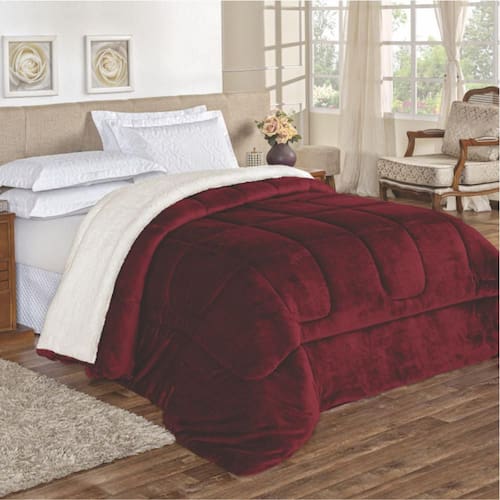 Edredom Coberdron Solteiro Versátil Sherpa Toque Lã Carneiro - Vinho Edredom coberdron versátil solteiro dupla face sherpa toque lã carneiro e tecido 100% algodão - super macio - Utilizamos matérias-prima de excelente qualidade que resistem à processo de lavagem, mantendo a beleza e durabilidade do produto. Contém na embalagem: 01 edredom solteiro 2,40m comprimento x 1,50m largura Composição: Tecido sherpa: 100% poliéster Enchimento: 100% poliéster Tecido: 100% algodão O edredom coberdron versátil é um produto que alia os conceitos de cobertor e edredom , trazendo o melhor de cada um deles em uma única peça, super versátil, trazendo conforto e maciez extrema. no interior dos dois tecidos utilizamos a manta com gramatura 80 que fica com uma altura muito satisfatória. A composição de cores torna essa peça perfeita para deixar seu quarto muito mais bonito, elegante e sofisticado. ideal para tornar sua cama ainda mais aconchegante e aquecida em noites de frio mais intenso. atenção: a foto apresentada no anuncio pertence ao nosso atelier, é a foto do produto cuidado com as falsificações As cores podem mudar de acordo com o monitor. fique atento à descrição do produto.