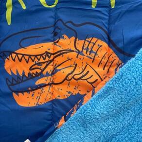 Edredom com Sherpa Solteiro Estampado Dinossauro 150x220m Descrição O edredom Sherpa Solteiro Estampado Dinossauro 150x220cm Lepper é a escolha perfeita para transformar o quarto infantil com alegria, cor e muito conforto. Sua estampa divertida de dinossauros encanta os pequenos aventureiros e dá um toque especial ao ambiente. Confeccionado em 100% poliéster, com manta acrílica e sherpa ultra macio, proporciona uma sensação de acolhimento e aquecimento ideal. A peça é dupla face, unindo beleza e versatilidade com um visual encantador de um lado e toque peluciado do outro. Este edredom é hipoalergênico, pensado especialmente para crianças, e não acompanha fronha. Possui gramatura de 382 g/m, garantindo conforto nas noites mais frias. Ideal para quem busca qualidade, design lúdico e praticidade na rotina dos pequenos. Marca Lepper Observação: imagem meramente ilustrativa, podendo haver variações de cores. Marca: Não Informado