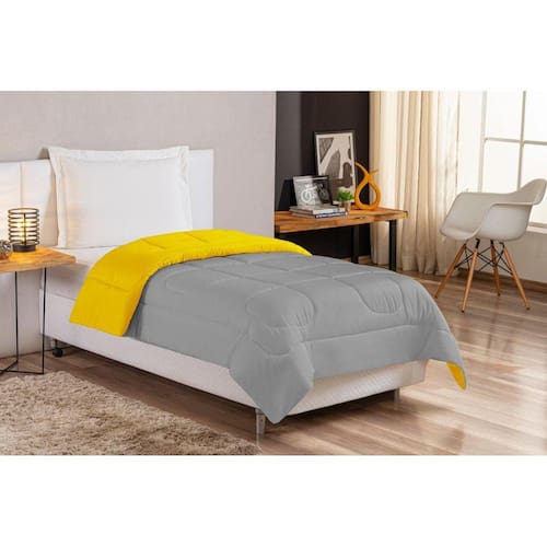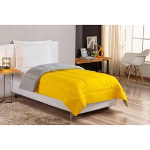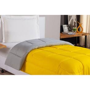 Edredom de Solteiro Dupla Face em Microfibra Amarelo e Cinza Produto indispensável para aquecer, dar conforto e deixar o quarto ainda mais bonito. Contém:01 Edredom 2,20m x 1,60m Composição: Tecido Superior: Micro Fibra 100% PoliésterTecido Inferior: Micro Fibra 100% PoliésterInterior: Manta 120gr Produto produzido com costuras, não desbota e não encolhe - Ótimo acabamento e qualidade Marca: Nathalia Enxovais