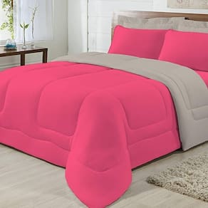 Edredom Dupla Face 100% Algodão Malha Casal Gran Moratta 01 Peça - Caqui/ Pink