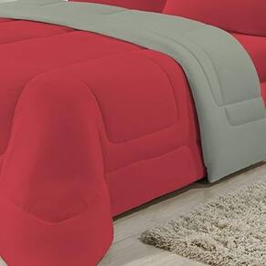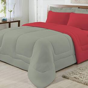 Edredom Dupla Face 100% Algodão Malha Casal Gran Moratta 01 Peça - Vermelho/ Cinza