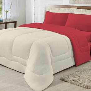 Edredom Dupla Face 100% Algodão Malha Casal Gran Moratta 01 Peça - Vermelho- Palha