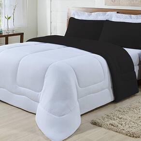 Edredom Dupla Face 100% Algodão Malha King Gran Moratta 01 Peça - Branco/ Preto