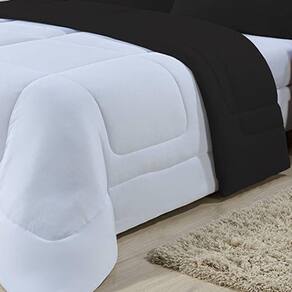 Edredom Dupla Face 100% Algodão Malha King Gran Moratta 01 Peça - Branco- Preto