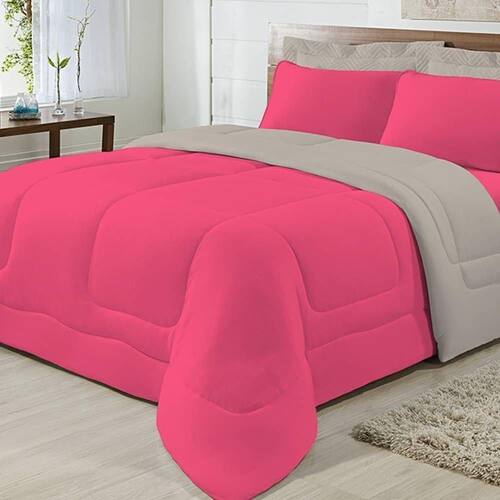 Edredom Dupla Face 100% Algodão Malha King Gran Moratta 01 Peça - Caqui/ Pink