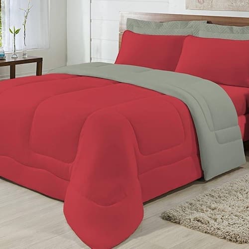 Marca: Enxovais Davy | Estampa: Não se Aplica | Medidas: 01 Edredom King Liso 2,50m x 2,90m | de Peças: Avulsa | Material: Agodão | Cor Predominante: Cinza/ Vemelho | Cama Indicada: King