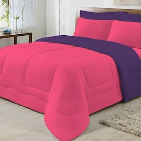 Edredom Dupla Face 100% Algodão Malha King Gran Moratta 01 Peça - Pink/ Roxo
