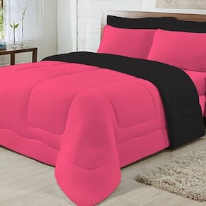 Edredom Dupla Face 100% Algodão Malha Queen Gran Moratta 01 Peça - Pink/ Preto