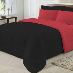 Edredom Dupla Face 100% Algodão Malha Queen Gran Moratta 01 Peça - Vermelho/ Preto