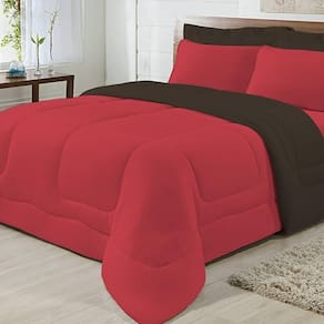 Edredom Dupla Face 100% Algodão Malha Solteiro Gran Moratta 01 Peça - Marrom/ Vermelho