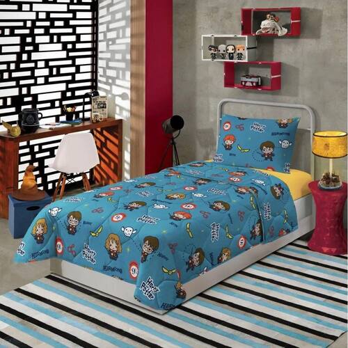 Edredom Dupla Face Microfibra Solteiro Harry Potter 140X210M
