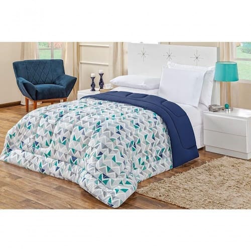 Edredom Dupla Face Super King Quality 01 Peça - Geométrico Azul