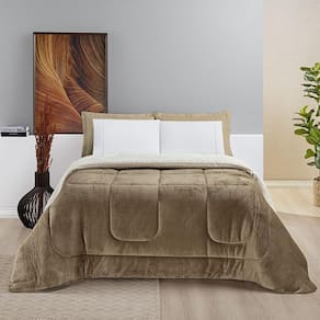 Edredom esquimó casal king dupla face sherpa toque lã carneiro - cáqui edredom dupla face sherpa toque lã carneiro e tecido 100% poliéster - super macio -