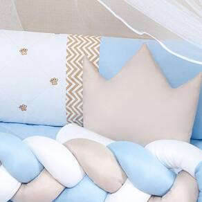 O destaque deste kit é a sua linda trança, que possui medidas de 1,28m x 0,12m e é perfeita para proteger o bebê de possíveis impactos. Além disso, o kit conta com um edredom dupla face todo matelado com várias costuras, que garante o aconchego necessário para uma boa noite de sono.