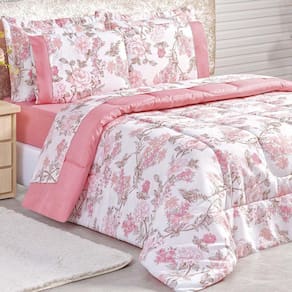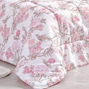 Kit Edredom Diamond King Dupla Face Micro Percal 200 Fios 3 Peças - Rosa Florido