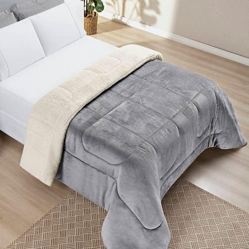 Apresento a vocês nosso Coberdrom Everest. Dupla face, matelassado em manta siliconizada, um dos lados é produzido em Sherpa fofinha como novelo de lã de carneiro, e outro lado em mantinha flannel aveludada. Super quentinho e aconchegante, proporcionará uma bela noite de descanso.