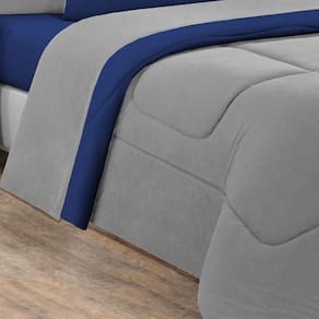 Edredom Malha 100% Algodão Gran Moratta 1 Peça King - Cinza/azul Royal