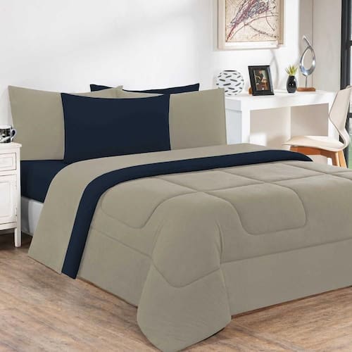 Marca: Enxovais Davy | Estampa: Não se Aplica | Medidas: 01 Edredom Queen Liso 2,20m x 2,40m | de Peças: Avulsa | Material: Agodão | Cor Predominante: Avelã/Azul Marinho | Cama Indicada: Queen