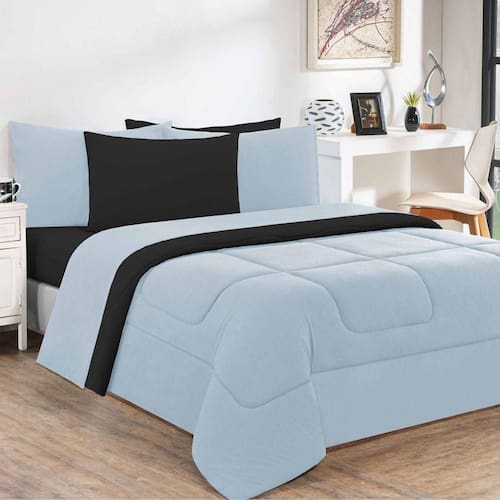 Edredom Malha 100% Algodão Gran Moratta 1 Peça Solteiro - Azul Bebê/preto