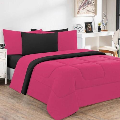 Marca: Enxovais Davy | Estampa: Não se Aplica | Medidas: 01 Edredom Solteiro Liso 1,60m x 2,40m | de Peças: Avulsa | Material: Agodão | Cor Predominante: Pink /Preto | Cama Indicada: Solteiro
