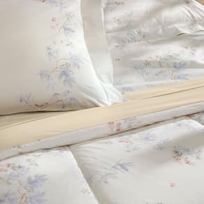 Delicada e poética, a estampa Campestre traduz a beleza natural dessas flores em um visual leve e sofisticado. Com traços finos sobre um fundo suave, a padronagem traz ramos floridos em tons azul e vermelho, um puro romantismo discreto. Ideal para criar uma atmosfera fofa e acolhedora, sem perder o requinte. Produzida em Percal 100% algodão com 200 fios, a linha Campestre proporciona toque macio, alta durabilidade e um acabamento impecável, que valoriza os detalhes sutis da estampa. A impressão em alta definição reforça a delicadeza dos traços florais e a leveza das cores, transformando a cama em um verdadeiro jardim de serenidade. Campestre representa com perfeição a elegância natural proposta pela tendência Quiet Luxury, que aposta em texturas suaves, tons claros e uma estética sensorial para o quarto.