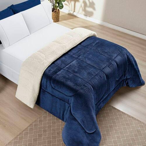 Apresento a vocês nosso Coberdrom Everest. Dupla face, matelassado em manta siliconizada, um dos lados é produzido em Sherpa fofinha como novelo de lã de carneiro, e outro lado em mantinha flannel aveludada. Super quentinho e aconchegante, proporcionará uma bela noite de descanso.