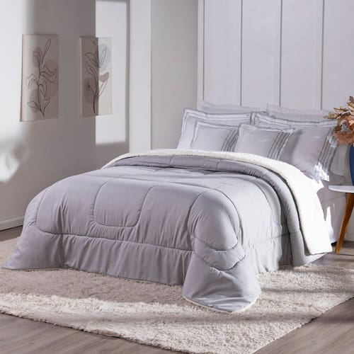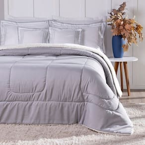 Descubra o Coberdrom Soft, a escolha perfeita para unir estilo, conforto e praticidade nas suas noites. Com design dupla face, você pode aproveitar o toque sofisticado do hipercal 400 fios de um lado e a maciez acolhedora da sherpa, que simula a textura da lã de carneiro, do outro. As fronhas possuem um debrum estampado em três lados, adicionando um acabamento elegante, enquanto as capas de almofada contam com debrum em todos os lados e fechamento em zíper para mais praticidade. O coberdrom é costurado nas bordas, garantindo que a manta interna fique sempre no lugar, mesmo após o uso. Conteúdo da Embalagem e Medidas Aproximadas:01 Coberdrom 2,20 x 2,40 m02 Fronhas 70 x 50 cm (medida útil)02 Capas de Almofada 40 x 40 cm (medida útil)Composição:Tecido Superior: 100% PoliésterTecido Inferior: Sherpa - 100% PoliésterManta: 100% Poliéster