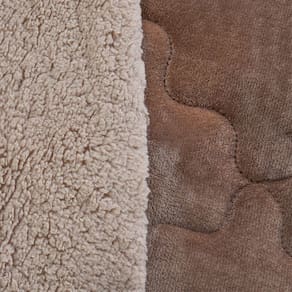 Fabricado em 100% poliéster, o Edredom Sherpa é leve, resistente e de fácil manutenção. Sua composição dupla face oferece duas texturas incríveis: um lado com toque flannel, macio e quente, perfeito para os dias mais frios, e o outro lado com acabamento sherpa, que lembra a textura da lã, oferecendo ainda mais conforto e estilo ao seu quarto.