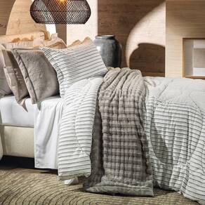 Aconchego com elegância em cada detalhe. O edredom Raya da coleção Blend Sense une conforto térmico e design sofisticado, ideal para os dias mais frios. Seu lado superior em poliéster com relevo em listras 135g/m confere textura e estilo, enquanto o lado inferior em PV Fleece garante toque suave e sensação de maciez prolongada. O enchimento em poliéster thermobonder 150g/m proporciona isolamento térmico eficiente, ideal para o inverno. Com fronhas combinando, a linha Raya uma composição harmoniosa, oferecendo uma experiência sensorial completa perfeita para transformar seu quarto em um espaço acolhedor e elegante. Disponível nas cores Raya Branco e Raya Porcelana, nos tamanhos Solteiro, Casal e Queen.