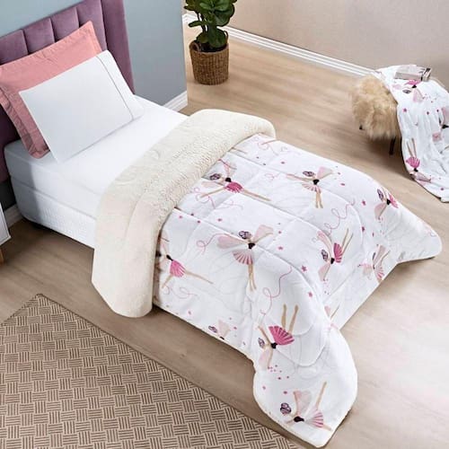 Edredom Solteiro Coberdrom Kids Sherpa-mantinha 1 Peça Bailarina - Branco