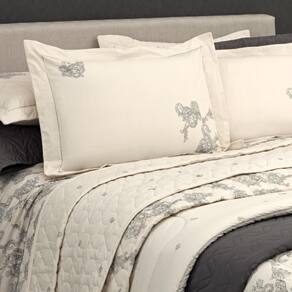 O Edredom Kacyumara da coleção Vida Bela é fabricado em tecido de algodão de 200 fios .