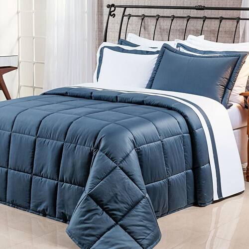 Edredom Solteiro King Pádua 2Pçs Dupla Face Tecido Egípcio 400 Fios 100% Algodão Azul Se você procura por um produto de alta qualidade e extremo conforto, a coleção Pádua algodão egípcio pode ser a escolha ideal, o algodão egípcio não deixa a desejar no quesito luxo, ele tem características únicas e é extremamente macio e suave. Assim, com algodão egípcio, é possível sentir a sensação de dormir nas nuvens e garantir um sono tranquilo e agradável, Além de fazê-lo dormir melhor, ele também contribui para a decoração do quarto. Deixando ainda mais charmoso e bonito.