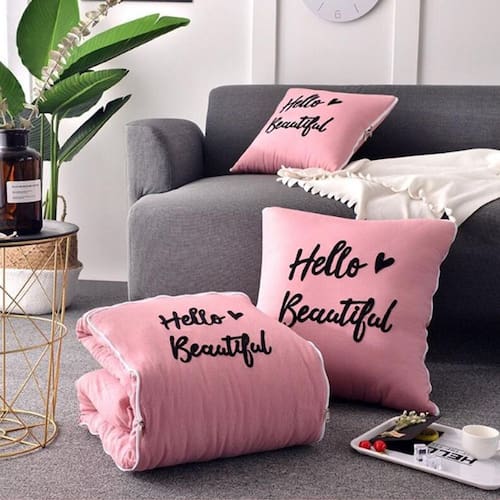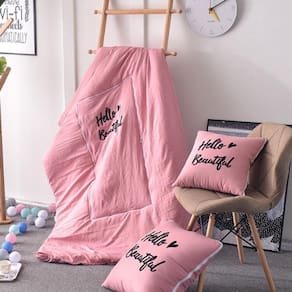 Edredom Vira Almofada Rosa Casal Exclusivo Casa Da Fama 1 Almofada que vira edredom - Hellow Beautful - Casal Disponível nas cores: Rosa Medidas: Modelo solteiro - Almofada 65x65cm - Edredom 2,30 x 2,20 mt Composto por: Capa de almofada e edredom em microfibra toque suave. Estampa 100% digital Enchimento: manta siliconada tecnológica antialérgica 100% poliéster Sempre pensando em praticidade e versatilidade, a Casa da Fama designer, Lança sua coleção de edredons vira almofadas, que vão te acompanhar nos momentos de aconchego e conforto. Muito macio e quentinho, além de serem leves e super decorativas. Ideal para viagens, guardar no carro ou otimizar espaço no seu apartamento. Quando aberto é um delicioso edredom de toque macio, e basta dobrar para virar uma linda almofada decorativa. Possui fechamento em ziper para manter o formato e facilitar a dobra. Estampas lindas e coloridas que vão valorizar e modernizar o seu ambiente. Produto confeccionado com a mais alta tecnologia, proporciona sensação de abraço e bem estar. Multifuncional, decorativo e versátil. Incríveis para presentear. Nossas peças são reconhecidas mundialmente pela qualidade e veracidade a qual vendemos pela internet. As almofadas a venda é composto por todas as peças da foto imagem, incluindo os enchimentos. Nossas estampas são 100% digital, podendo lavar por varias vezes sem perder a resolução Da estampa e nem desbotar com o tempo. Atenção: o produto pode sofrer pequena alteração de tonalidade de cor dependendo Da configuração do seu computador, tablet ou celular. Marca: Casa Da Fama