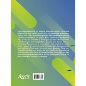 A presente obra busca, por meio de linguagem simples e acessível, questionar o atual cenário da Educação Física brasileira. Ao longo do texto, o autor critica o viés ideológico que vem dominando o currículo acadêmico, em especial nas escolas, desde a formulação de objetivos até a escolha de conteúdos e abordagens de ensino. Nesse sentido, uma abordagem da Educação Física pautada pelo devido embasamento científico referente às preocupações com o desenvolvimento motor e a saúde dos alunos é aqui privilegiada. Além disso, é proposta uma objetiva reflexão sobre os rumos que a Educação Física vem tomando, especialmente após o período pandêmico. Dessa forma, espera-se que o livro Educação Física e liberdade: construindo um novo paradigma seja um pontapé inicial de uma mudança em favor de um novo e libertador rumo para a disciplina. Ean: 9786525036922