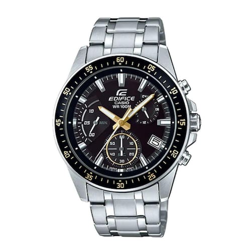 Este Relógio Casio possui cronógrafo multifuncional com desenhos detalhados e em camadas inspirados nos carros de corrida de fórmula rápida. Mostrador com designer dinâmico e tecnologia avançada inspirada nos esportes motorizados. Pulseira em aço inox, mostrador preto com calendário dia do mês e detalhes em dourado. Resistência a água 10 ATM.