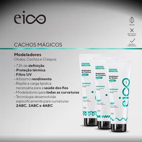 Características: Marca: Eico Pro Linha: Cachos Mágicos Categoria: Modelador de Cachos Versão: Cachos Mágicos Benefícios: Definição dos cachos, redução de frizz, hidratação, brilho intenso e fixação leve. Ingredientes Principais: Óleo de Coco, de Karité e Complexo Hidratante.