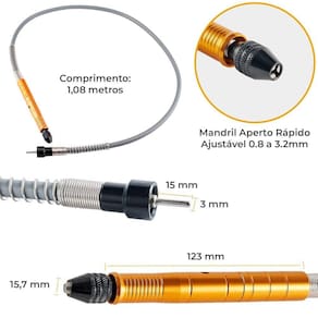 Eixo Flexível para Micro Retífica e Furadeira Mandril de Aperto Rápido