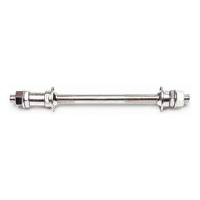 Eixo traseiro cromado 3/8 x 185 mm Espaçadores Porca com flange Contra-porca estriada Cones com protetor de pó