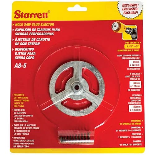 O dispositivo ejetor para serra copo Starrett de 89 - 127mm e 3.1/2 - 5 polegadas é a linha exclusiva de acessórios para serras copo que auxilia na remoção do material excedente após a finalização do corte.
