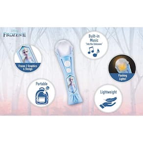 Construído na música do filme: Microfone Frozen 2 inclui clipe de música popular, "Into the Unknown" Microfone real para crianças: amplificar sua voz e colocar uma performance incrível para amigos e familiares Luzes piscando: show de luz colorido chamando os olhos significa que você está sempre nos holofotes Design leve: Microfone infantil portátil permite que você leve a festa onde quer que você vá Presente perfeito : microfones de brinquedo fazem grandes presentes congelados para meninas