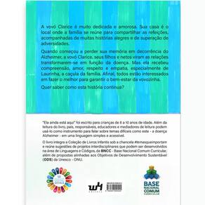 Descrição Título: Ela ainda está aqui! Subtítulo: Falando sobre Alzheimer com as crianças Autoras: Margareth Tringoni & Ruth Blaud Pomar Ilustradora: Ruth Blaud Pomar Lançamento: Agosto, 2023 Edição: 1a No. de páginas: 24 ISBN-13: 978-65-87009-44-5 Formato: 21x28 cm Peso: 180g