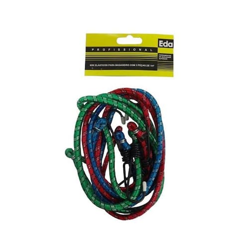 Elástico para bagageiro com 3 peças de 1m eda Elástico para bagageiro com 3 peças de 1m eda Elástico para bagaceiro com 3 peças de 1m da eda com ganchos nas pontas para prender volumes - modelo: 6ok- cor: verde, azul e vermelho- comprimento: l11 a23 p3- material: aço carbono, borracha e fibra de polipropileno- resistente e durável- peso: 0,140kg- garantia: 90 dias Itens inclusos- 1 elástico para bagageiro