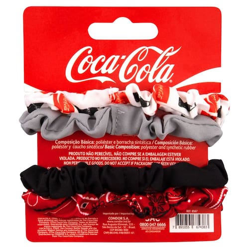 Mais variedade e estilo com o Kit Elástico para Cabelo Coca-Cola Condor! Com 4 elásticos em diferentes cores, o kit é ideal para variar nos penteados ou dar um toque divertido ao visual.