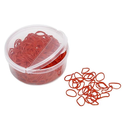 Elástico para crina de cavalo M Reis na cor Vermelha, utilizado para fazer tranças deixando o animal com mais estilo. Pote com 500 unidades.