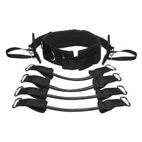 Cinto acolchoado e alças ajustáveis de tornozelo para a maioria dos tamanhos.