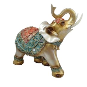 Elefante Decorativo Dourado Indiano Resina 15cm Altura Geralmente em residências e estabelecimentos comerciais o elefante costuma Ser colocado virado de costas para a porta de entrada, uma vez que nesta Posição o animal tende a atrair mais sorte e repelir a falta de dinheiro de quem Possui o amuleto.